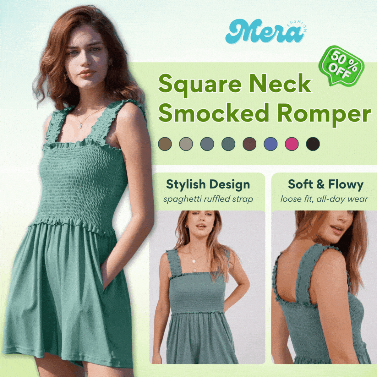 Smocked & backless Design: Our summer dressy romper with spaghetti ruffled straps, sexy square neck, inner shorts rompers with two pockets.